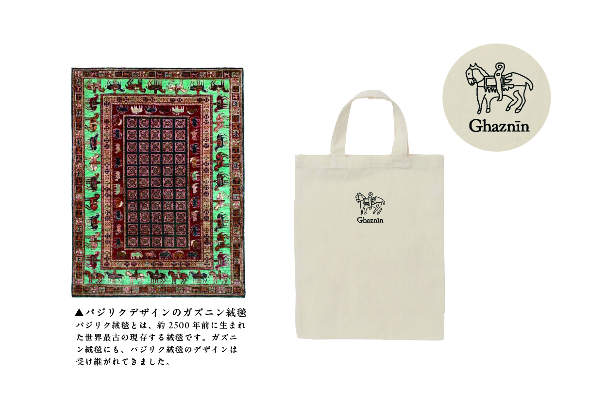 来場予約された方へ、ご来場の際にささやかなプレゼントをご用意しました。今年の干支である「馬」にちなみ、パジリクデザインに織り込まれた馬のモチーフをワンポイントにあしらった小さな布バッグをプレゼント!!