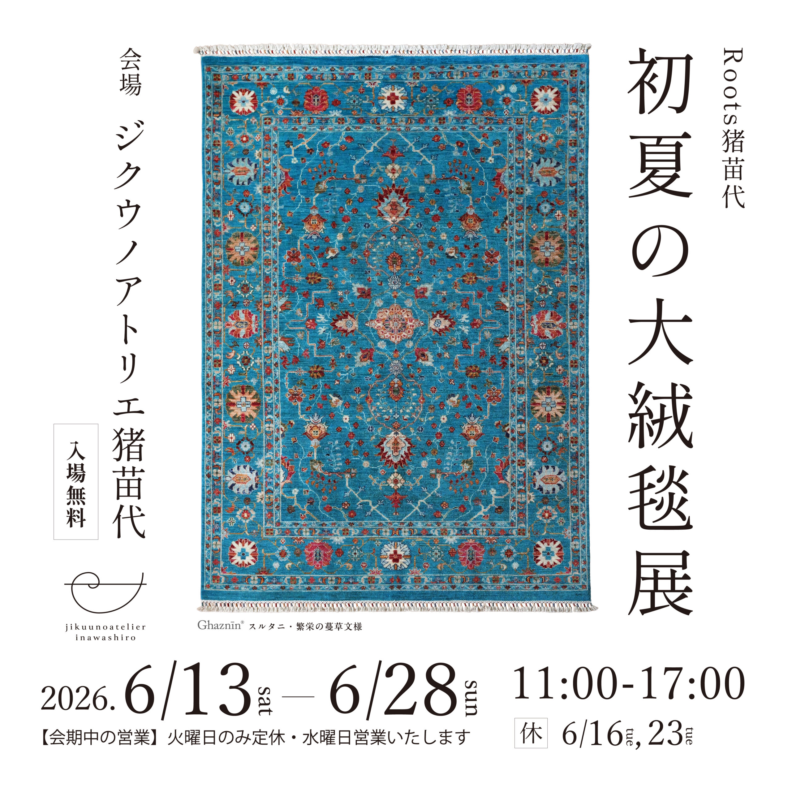 2026.04.01 2026.04.23 保護中: 2026.6.13 – 6.28 Roots猪苗代 初夏の大絨毯展 This content is password protected. To view it please enter your password below: 記事のタイトルとURLをコピーする Share Line RSS Pin it note たまき木工所のペンダントライト展 前の記事 初夏、木のある暮らしーtreecoat展ー 次の記事 新着のお知らせ 2026.04.14 初夏、木のある暮らしーtreecoat展ー 2026.02.01 たまき木工所のペンダントライト展 2026.01.12 【店外催事】冬の手織り絨毯展 in 福島市・月光醤油